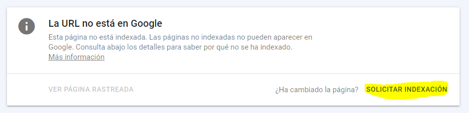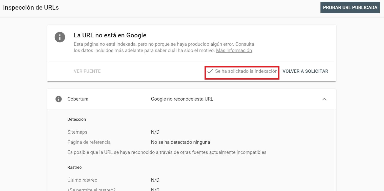 Si la url todavía no está indexada deberemos hacer click en el botón de Solicitar indexación
